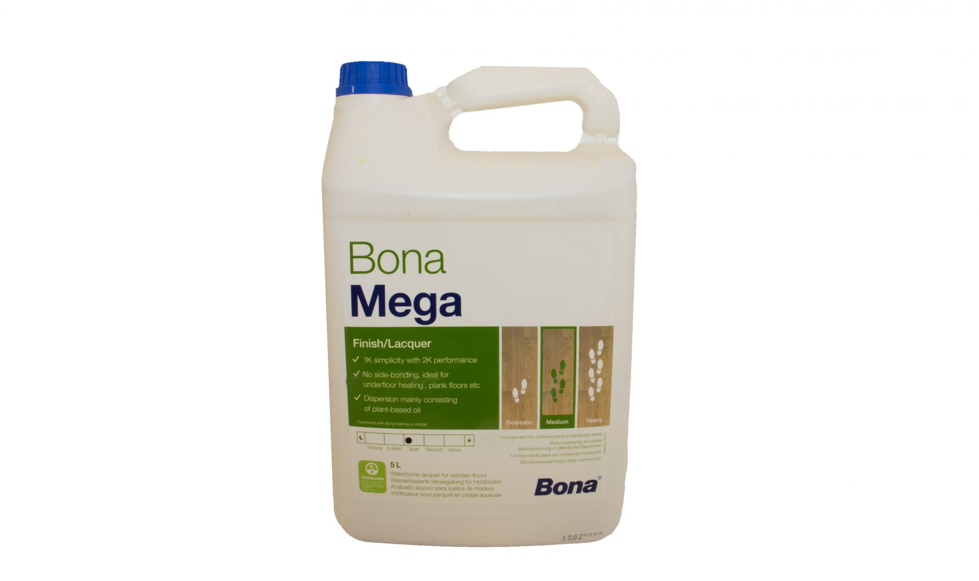 Bona Mega mat (5ltr) is een watergedragen parketlak. De unieke Bona Mega Mat levert de superieure weerstand van een 2-componenten aflak, met de veiligheid en het gebruiksgemak van een 1-component formule.